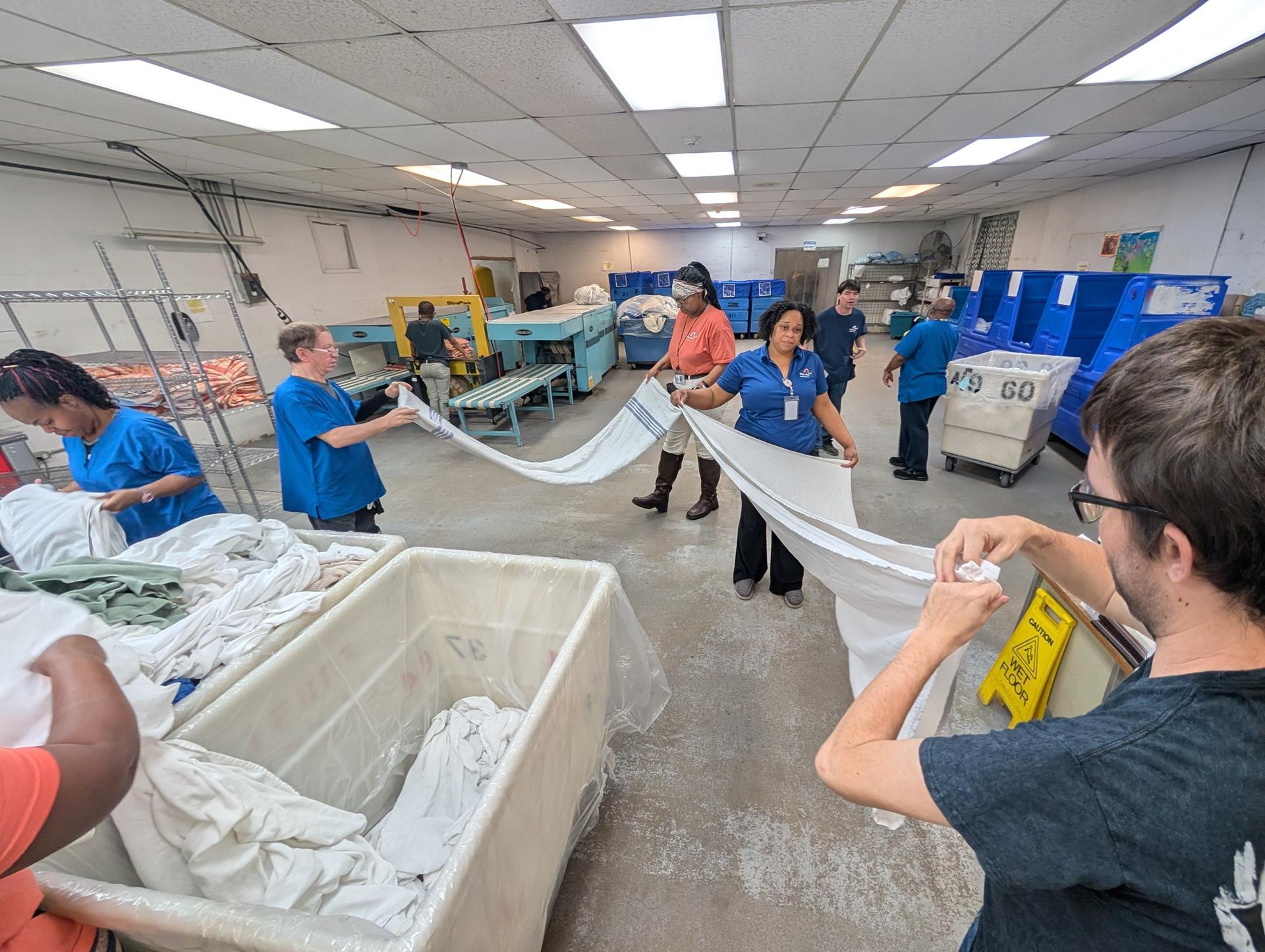 For years, The Arc Caddo-Bossier's Frost Industries has been proud to serve major clients like Willis Knighton Health Systems, Northwest Louisiana Veterans Home, Barksdale Air Force Base, Ft. Polk Army Installation, and Orthopedic Specialists of Louisiana - Shreveport and Bossier at Specialists Hospital Shreveport - processing 500,000 to 600,000 pounds of laundry annually!